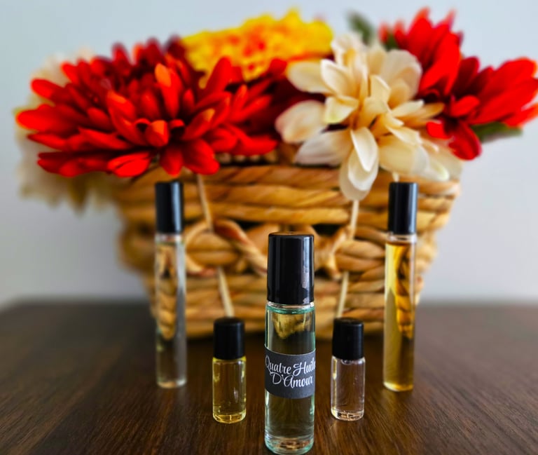 At Quatre Huiles D'amour, we offer innovative, high-quality natural fragrance oils that can be layered for a personalized scent.